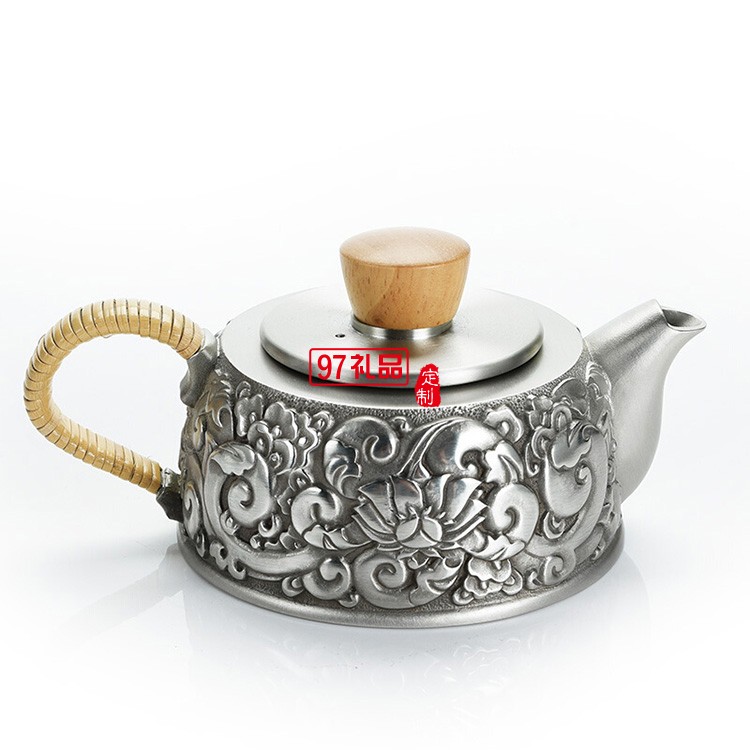 花紋雕刻裝飾精致典雅純錫茶壺高檔商務(wù)伴手禮logo定制