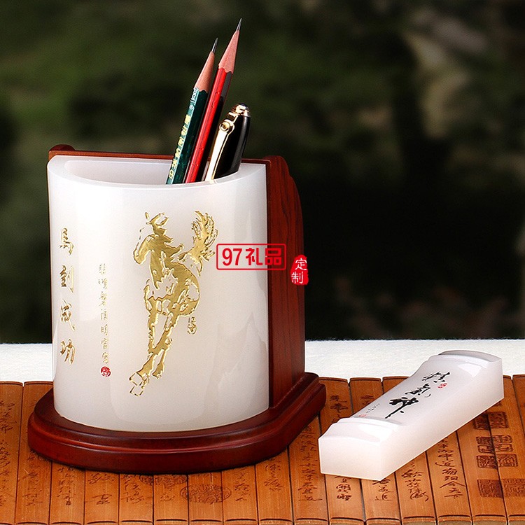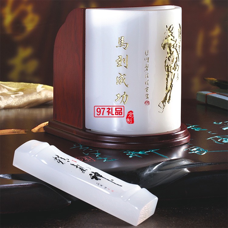 琉璃組合筆筒創(chuàng)意馬到成功辦公桌文具書房擺件企業(yè)周年慶教師禮品