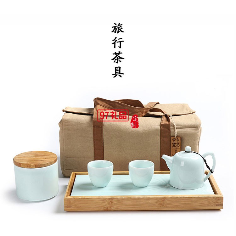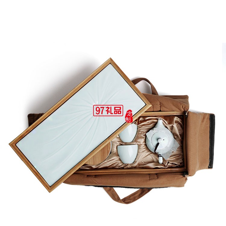 旅行茶具一壺兩杯茶具套裝 便攜茶具 竹制陶瓷茶盤套裝 可定制logo