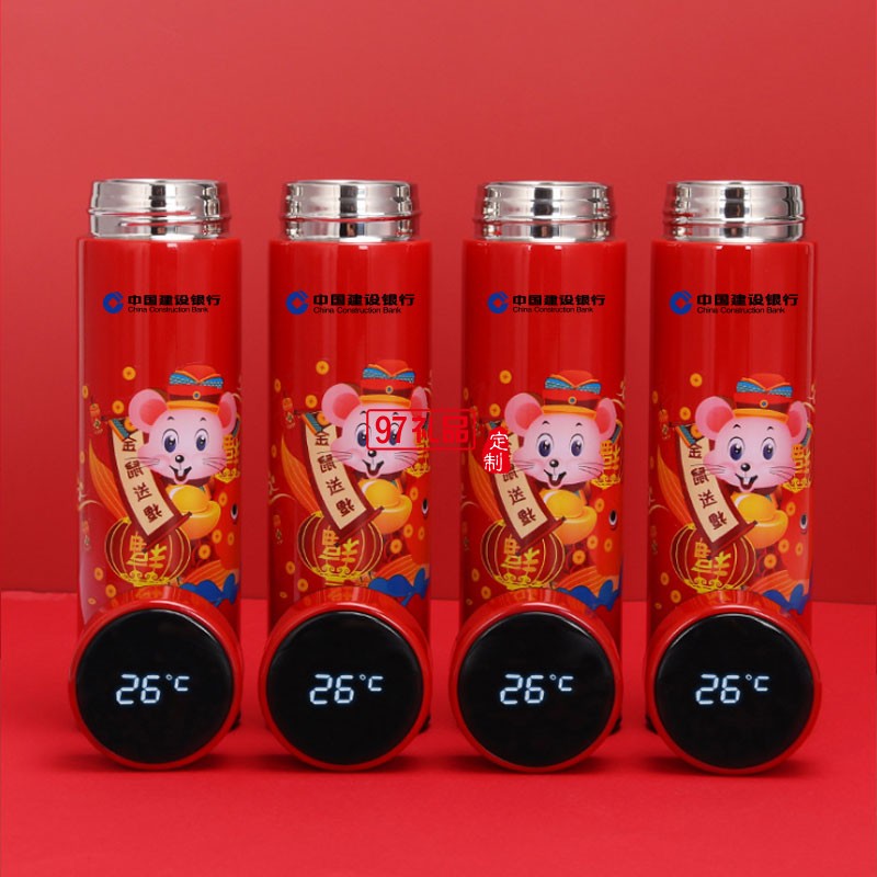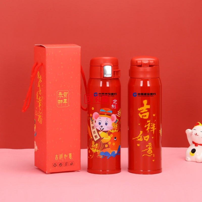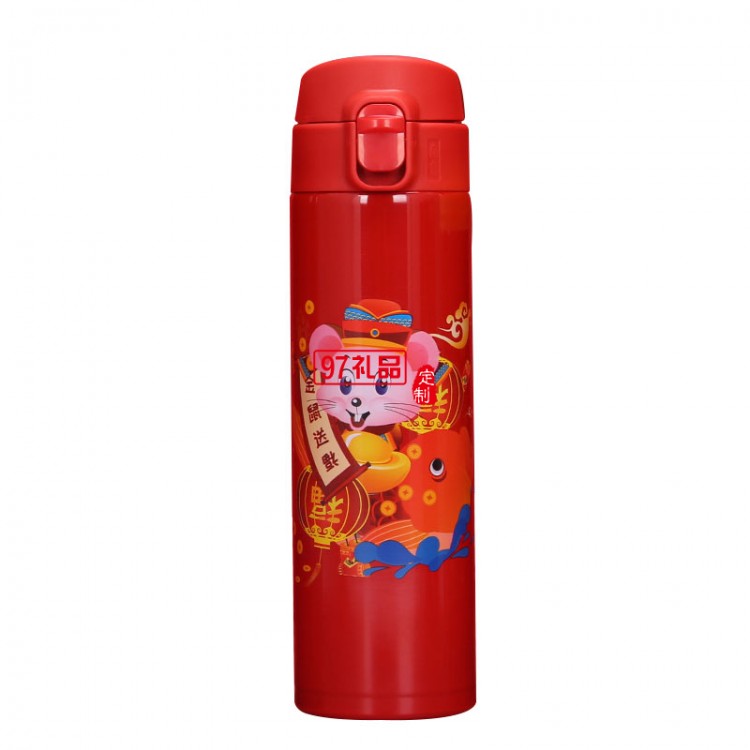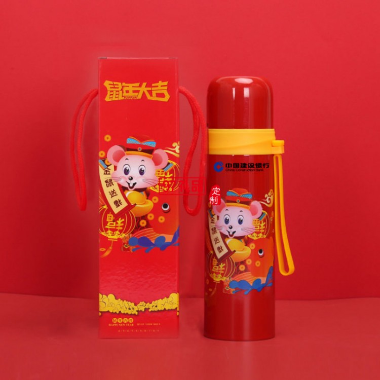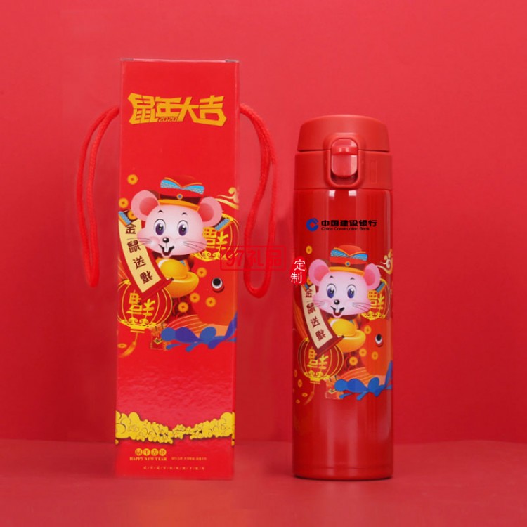 2020鼠年大吉開(kāi)門(mén)紅保溫杯金鼠送福溫度 可定制logo