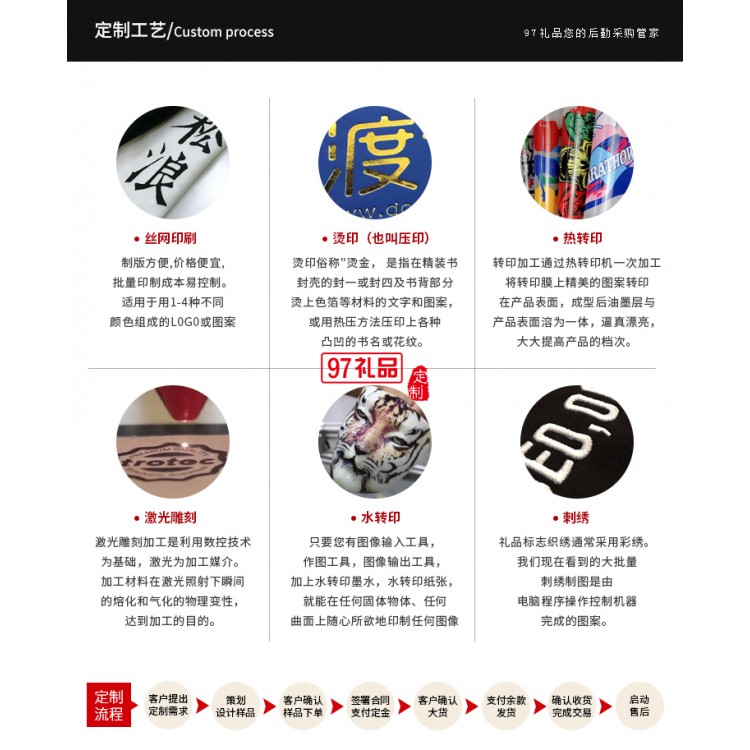適用范圍:廣告促銷 商務(wù)活動(dòng)、廣告派發(fā)、慶典開業(yè)、回饋客戶 定制流程:選中商品提出定制需求,免費(fèi)策劃設(shè)計(jì),確認(rèn)樣品下單, 簽署合同支付定金,支付余額收貨,售后啟動(dòng),免費(fèi)熱線:400-0197-908