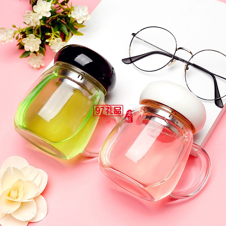簡約花茶杯 時(shí)尚把手玻璃杯 創(chuàng)意隨手杯鷹速國際定制
