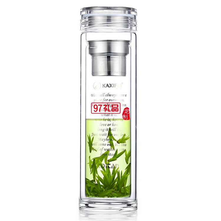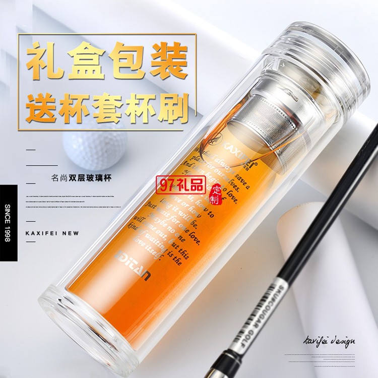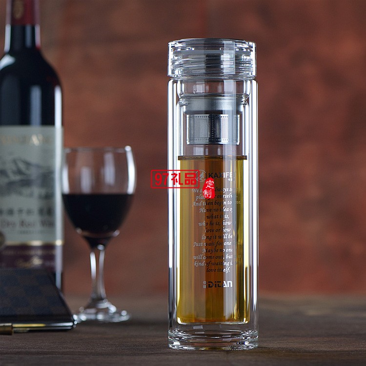 創(chuàng)意雙層高檔玻璃杯透明帶蓋過濾水晶泡茶杯禮品杯子定制