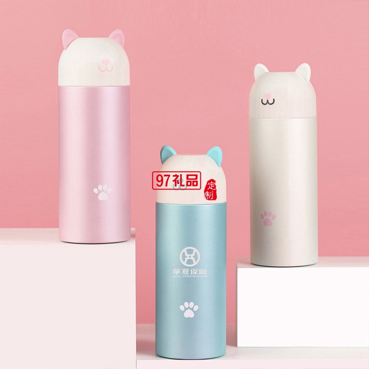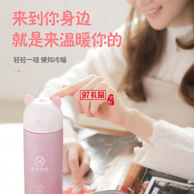 華夏銀行定制時(shí)尚喵喵保溫杯測溫?cái)?shù)顯304不銹鋼保溫杯禮品杯子定制