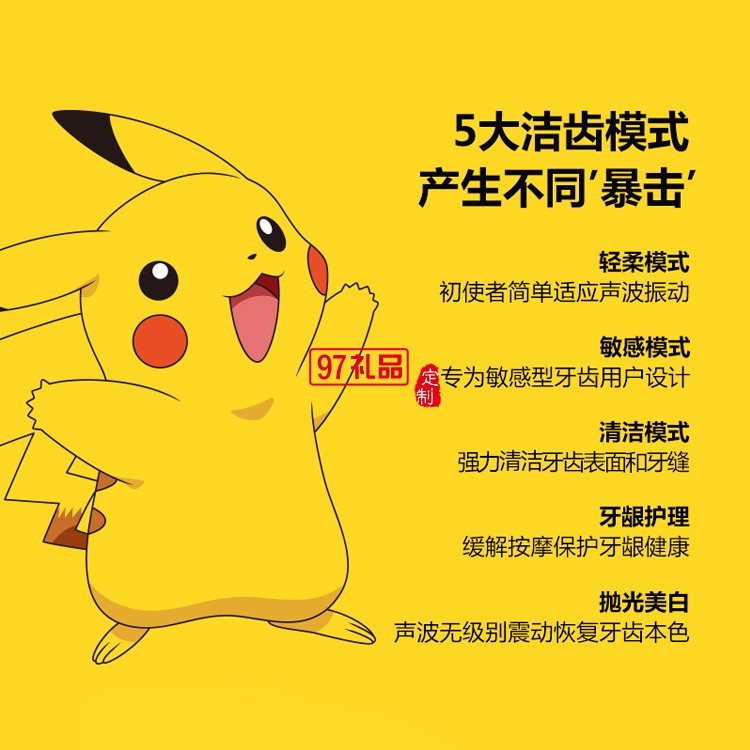 艾優(yōu)皮卡丘聯(lián)名成人款座充聲波充電式電動牙刷定制公司廣告禮品