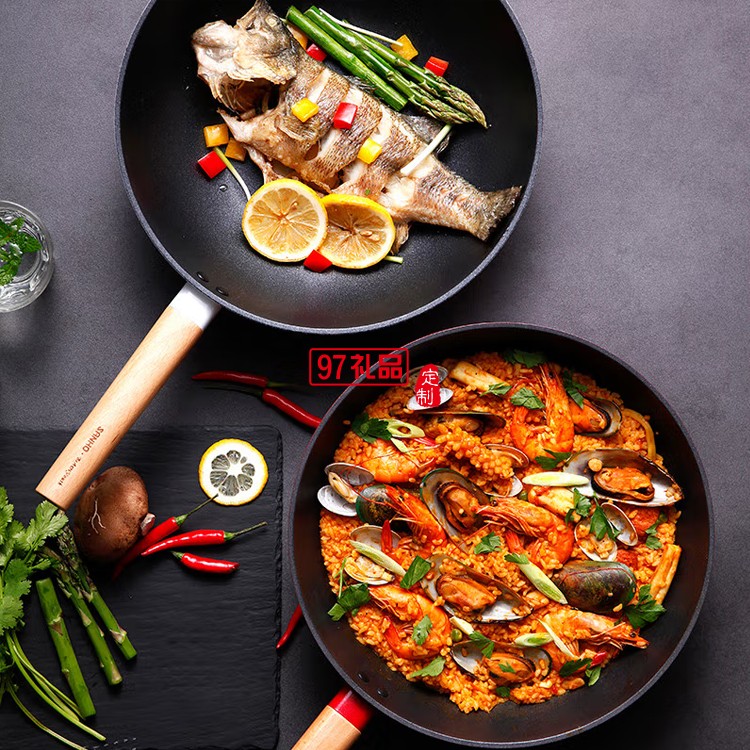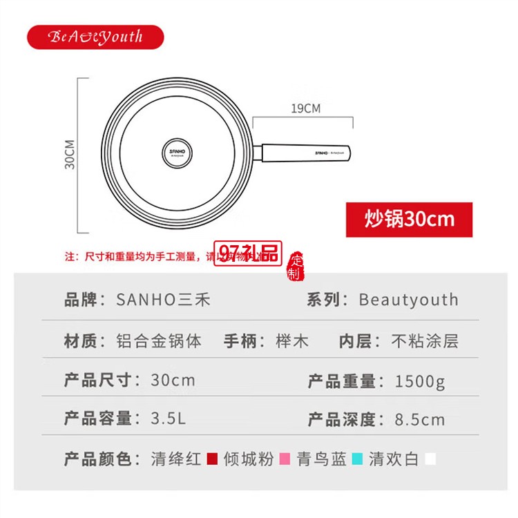三禾小清新不粘鍋炒鍋不粘炒鍋LC30E1定制公司廣告禮品