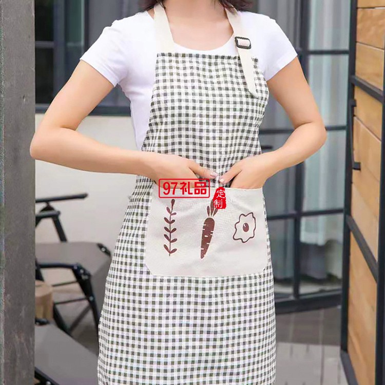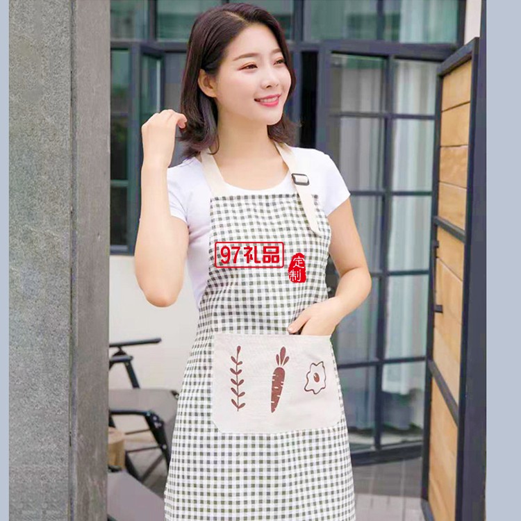 棉麻時尚圍裙餐廳廚房圍裙清潔工作服透氣耐用定制公司廣告禮品