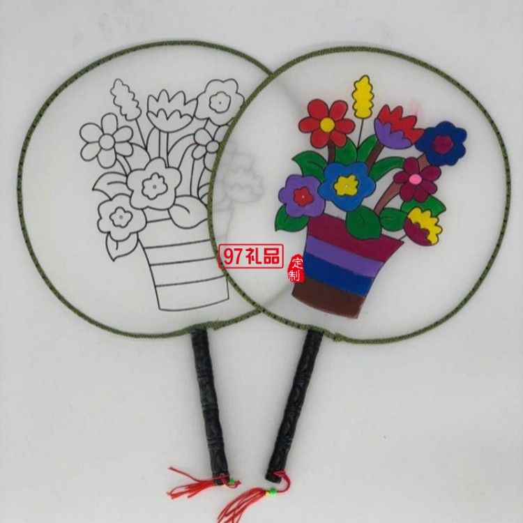 diy手工卡通扇子手繪涂鴉扇 兒童禮品