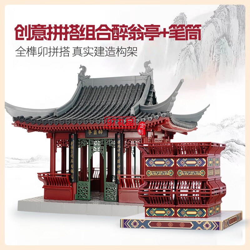 通用體系榫卯積木玩具中國(guó)風(fēng)古建筑潮玩禮物拼裝模型diy 陋室銘