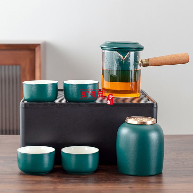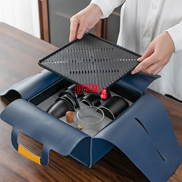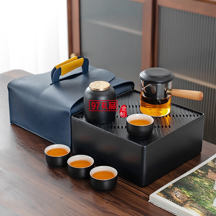 新品創(chuàng)意陶瓷便攜旅行茶具套裝茶盤皮包戶外一壺四杯 可定制logo