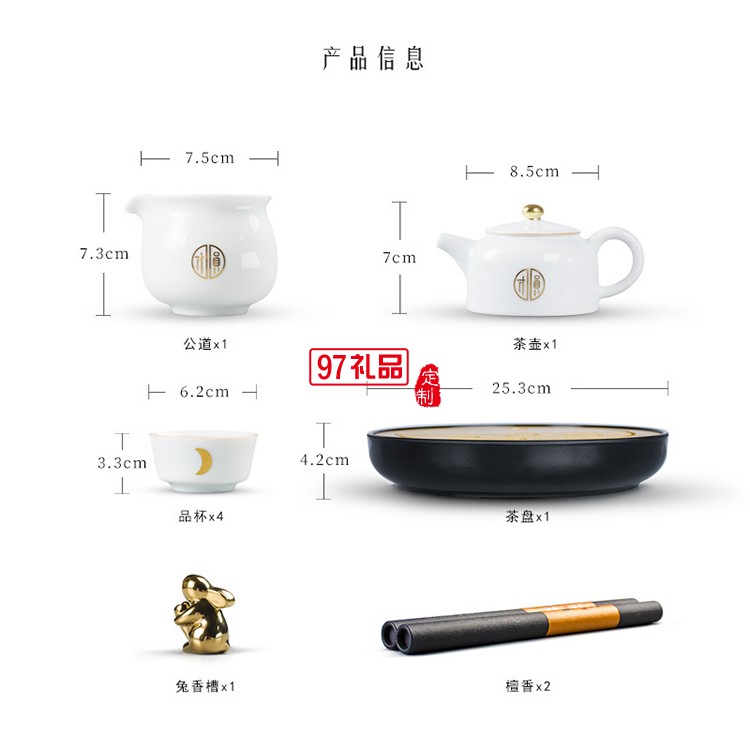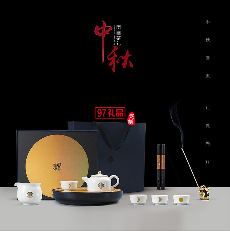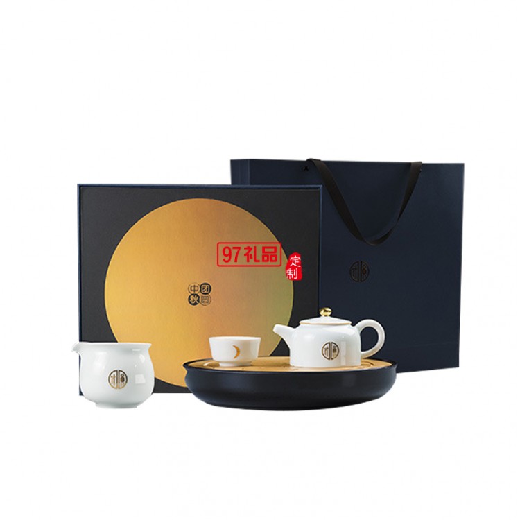 鵝絨白中秋團(tuán)圓茶禮旅行便攜整套茶具新款送禮中秋禮盒創(chuàng)意禮品
