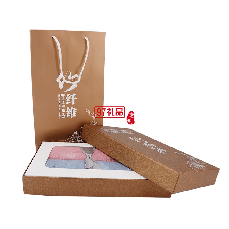 竹纖維毛巾2條禮盒裝面巾套裝定制企業(yè)禮品logo