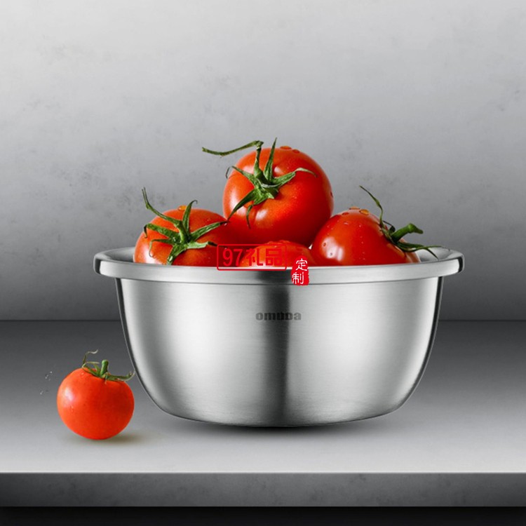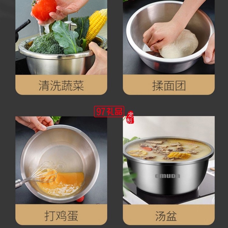 歐美達食品級304不銹鋼盆子廚房打蛋和面漏湯盆定制公司廣告禮品