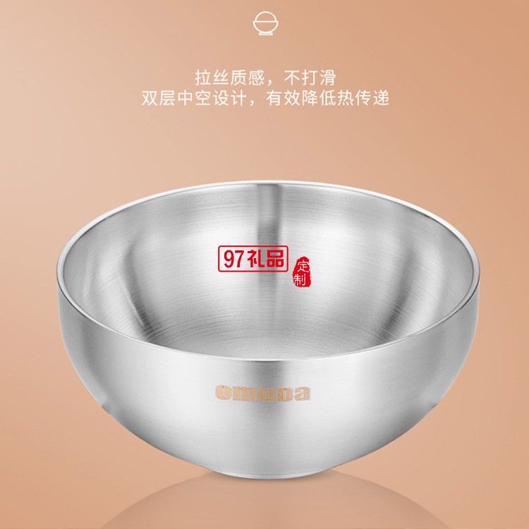 歐美達(dá)匠系列-不銹鋼雙層碗泡面碗定制公司廣告禮品