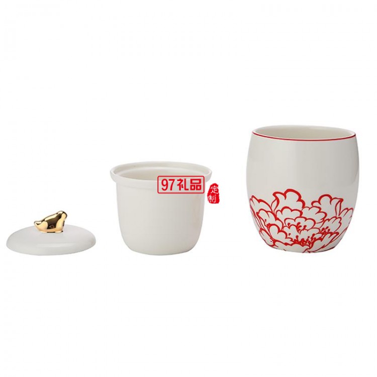 新品低骨瓷帶蓋茶隔杯創(chuàng)意禮品