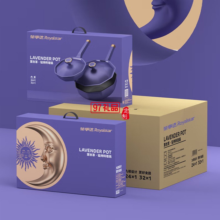 榮事達(dá)輕持料理鍋2件套R(shí)G-TZ3202MD九棱鍋定制公司廣告禮品