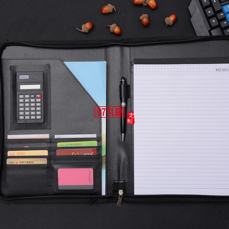 定制高檔PU皮質(zhì)拉鏈文件包 商務(wù)辦公簡約多功能經(jīng)理夾