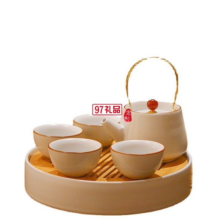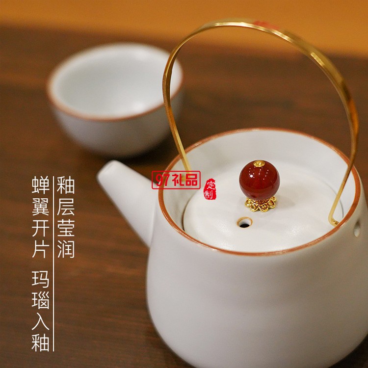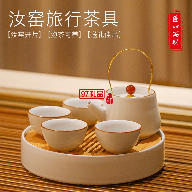 汝窯功夫茶具套裝家用提梁茶壺茶杯開片仿古汝瓷干泡盤
