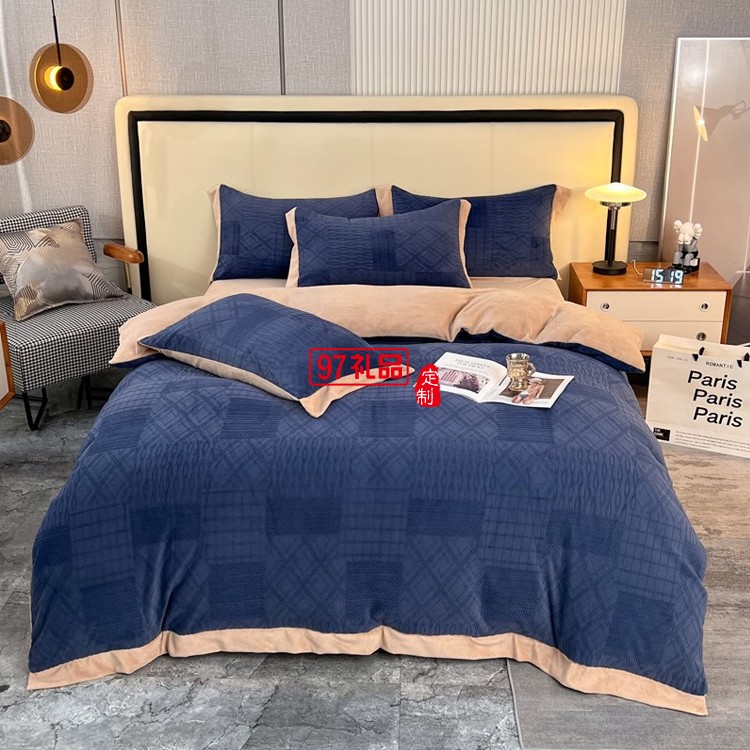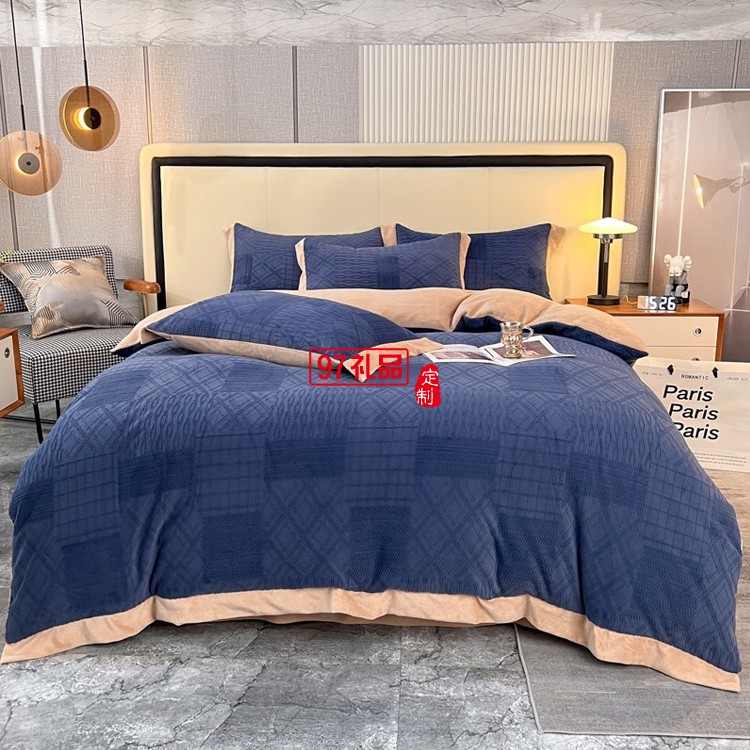 啄木鳥 牛奶絨雕花四件套-寶藍 ZMN-NNR004定制公司廣告禮品