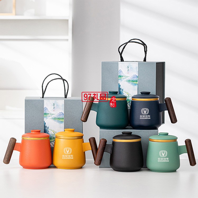 奔馳定制 新款陶瓷馬克杯過(guò)濾茶水分離大容量泡茶杯 可定制logo