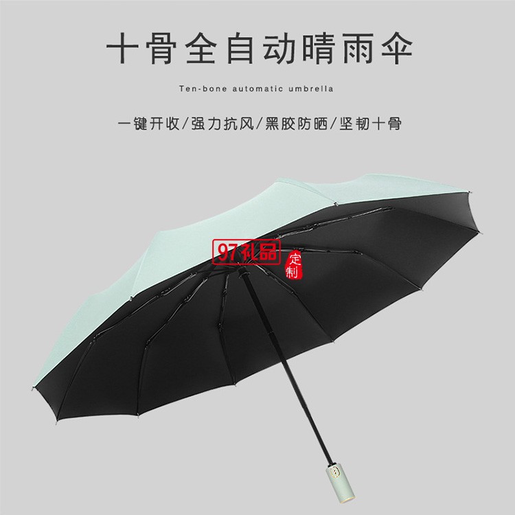 新款跨境黑膠十骨折疊遮陽(yáng)傘三折防曬太陽(yáng)傘全自動(dòng)晴雨傘