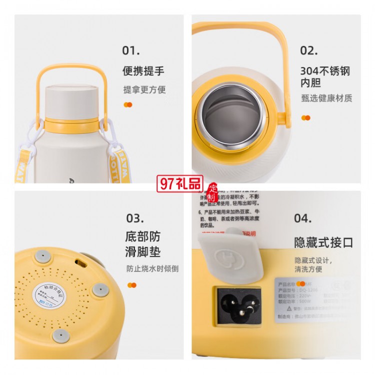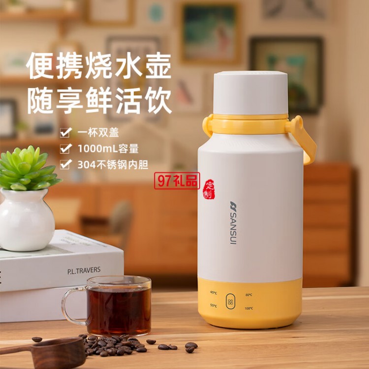 山水便攜式燒水壺大容量燒水杯旅行電熱水壺304不銹鋼電熱水杯 【可提可