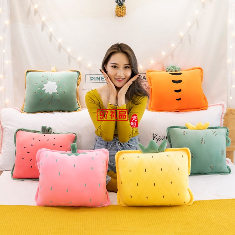 新款水果三合一空調(diào)被沙發(fā)靠墊抱枕被子兩用兒童午睡毯子