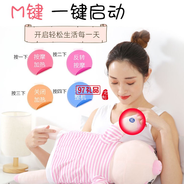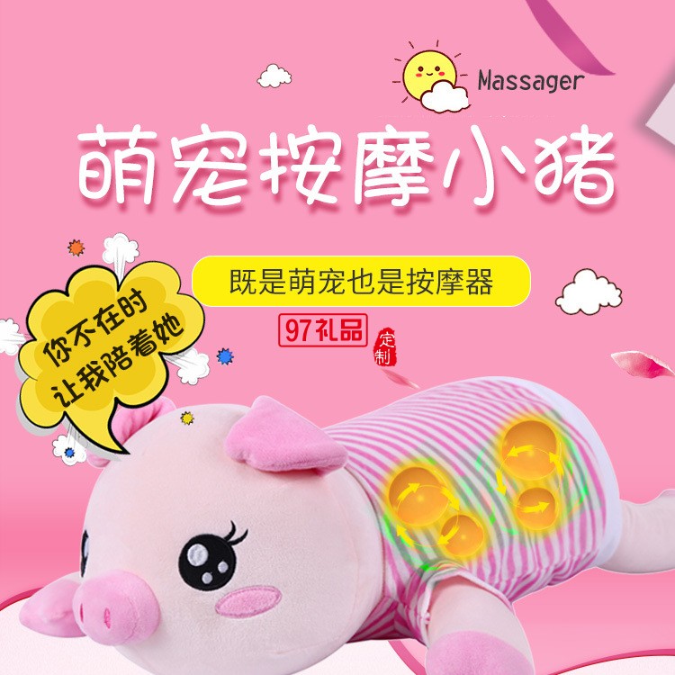 小豬頸椎按摩器頸部腰部多功能電動(dòng)按摩抱枕定制公司廣告禮品
