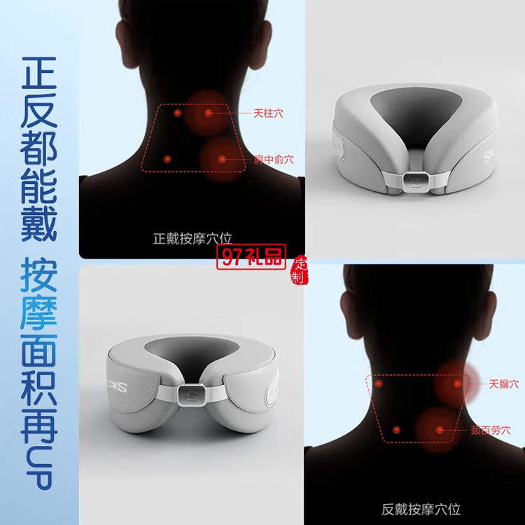 1、梯形排布按摩,正反都舒服: 正戴:按摩天柱穴、肩中俞穴 反戴:按摩天牖穴、頸白勞穴