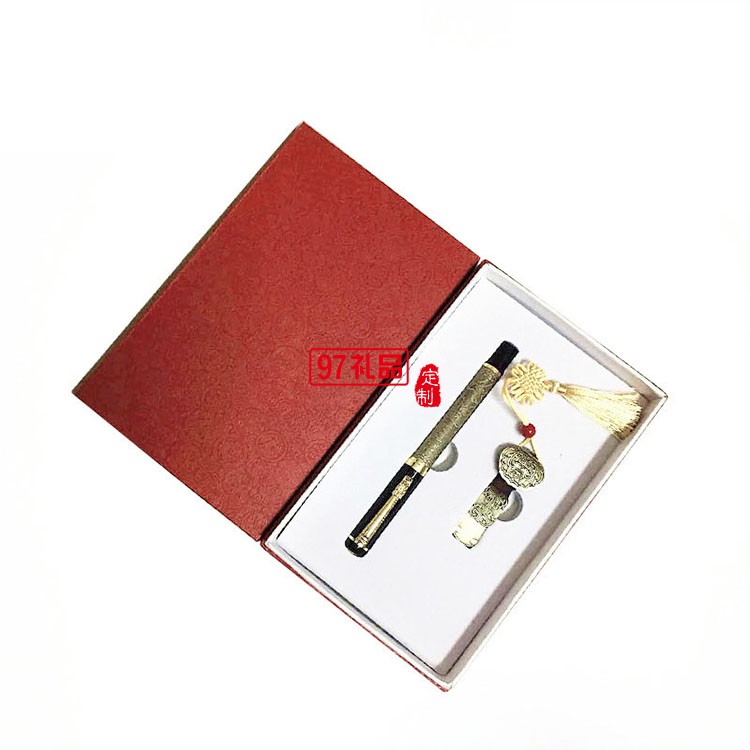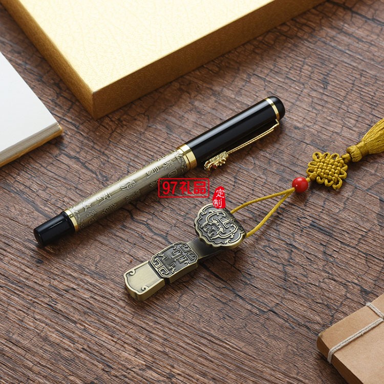 中國風(fēng)U盤套裝8G16G如意U盤金屬簽字筆鋼筆logo企業(yè)周年禮品定制