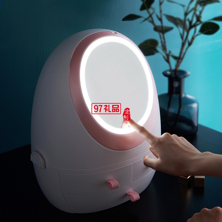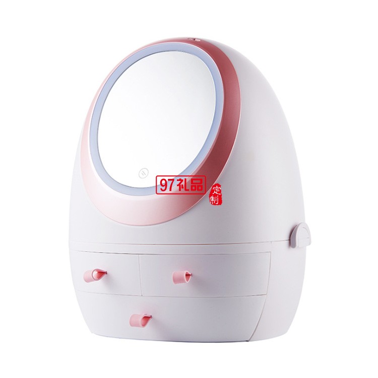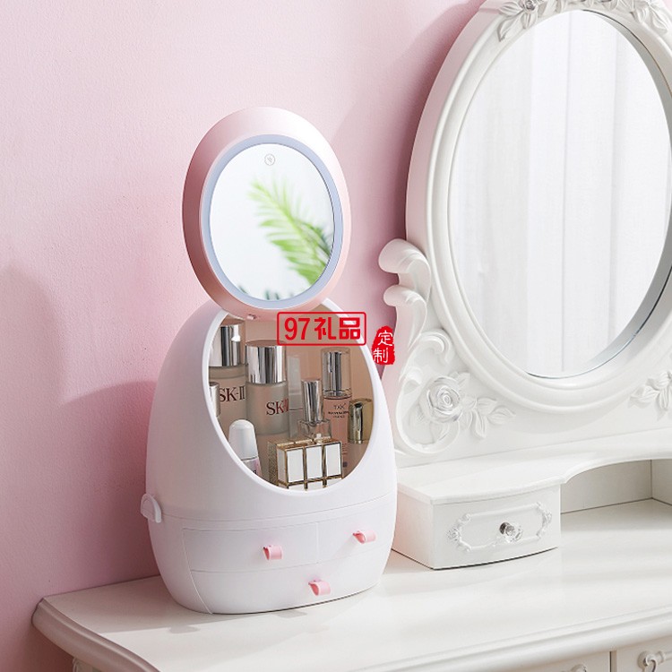 抽屜式化妝品收納盒帶LED鏡子 可定制LOGO定制公司廣告禮品