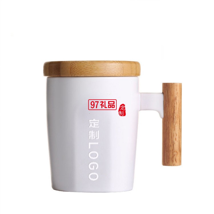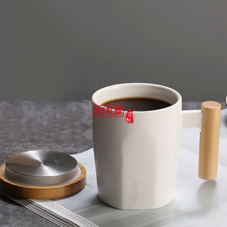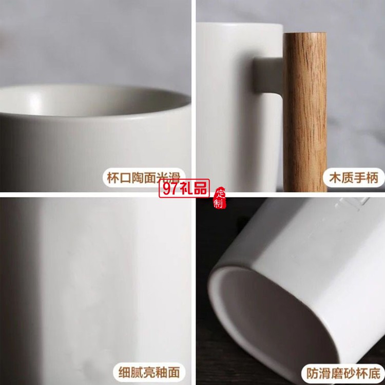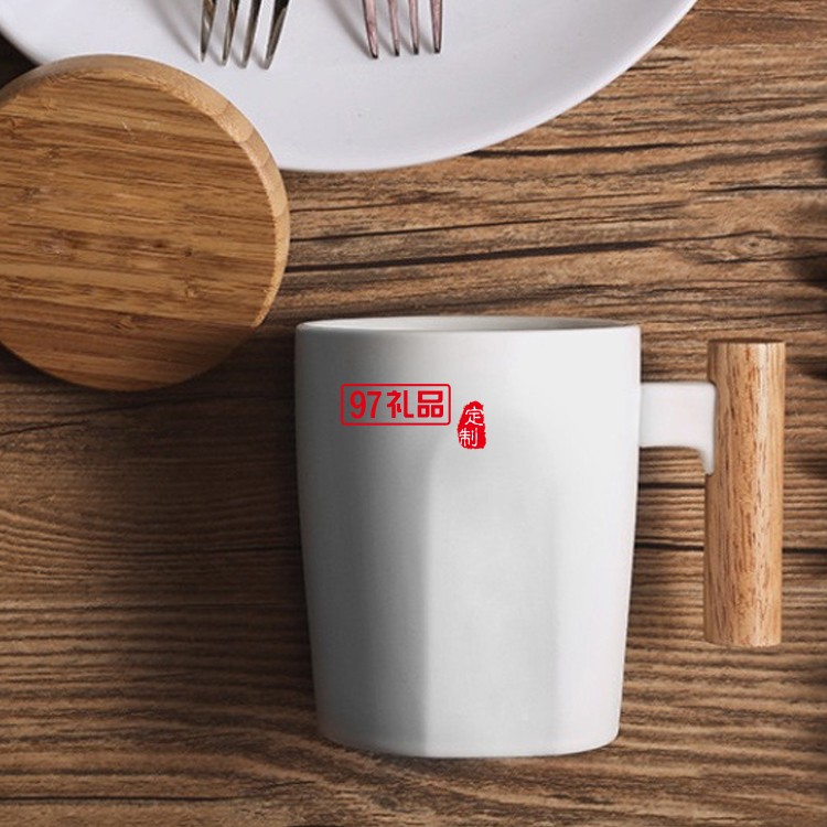 創(chuàng)意杯子陶瓷馬克杯木柄咖啡杯辦公室水杯帶蓋黑白情侶杯商務禮品