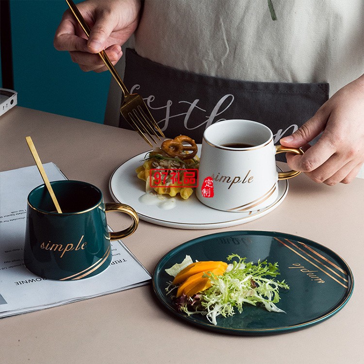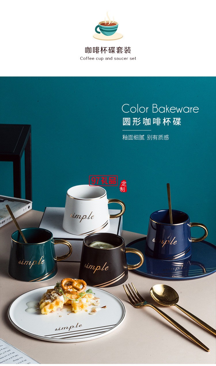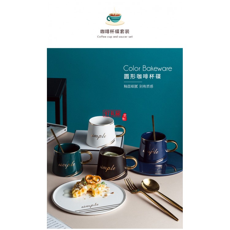 新品創(chuàng)意圓形杯碟套裝陶瓷杯咖啡杯馬克杯 可定制logo