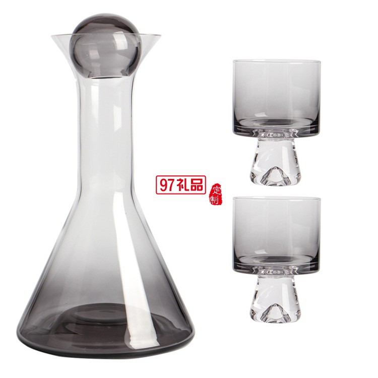 煙熏漸變色鍍銅玻璃壺涼水杯玻璃冷水壺玻璃水杯