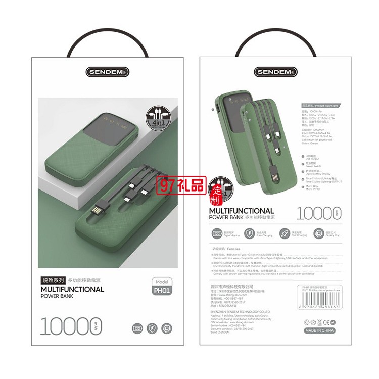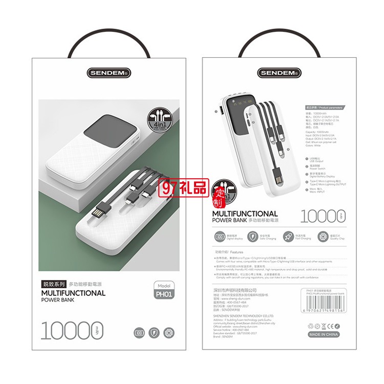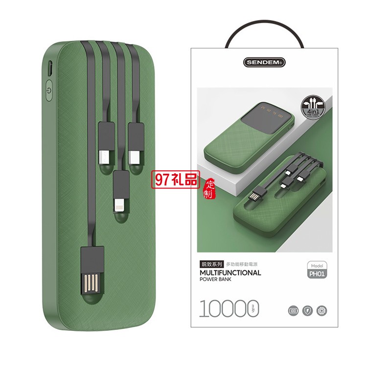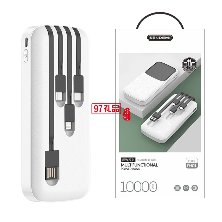 便攜快充四合一移動電源 自帶線10000毫安