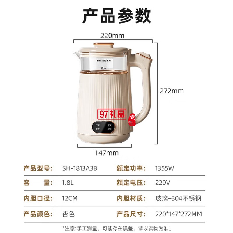 志高燒水壺電熱水壺電水壺雙層防燙大容量家用玻璃內(nèi)膽恒溫保溫?zé)畨?