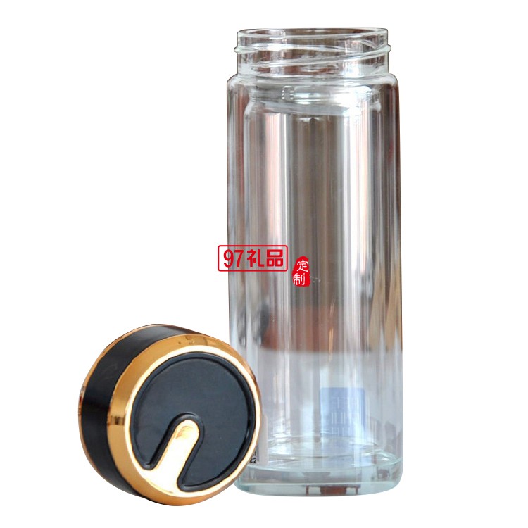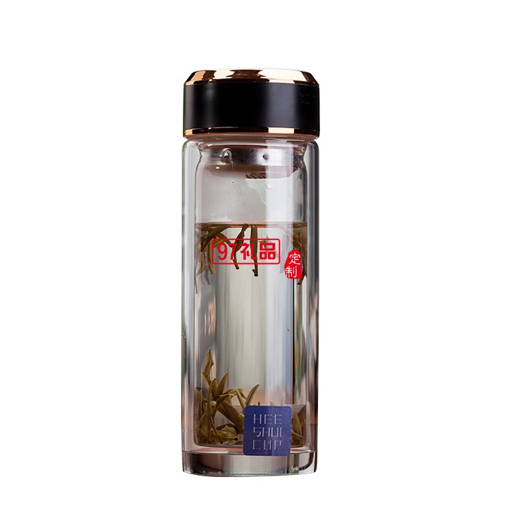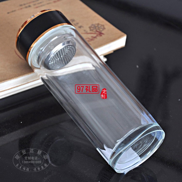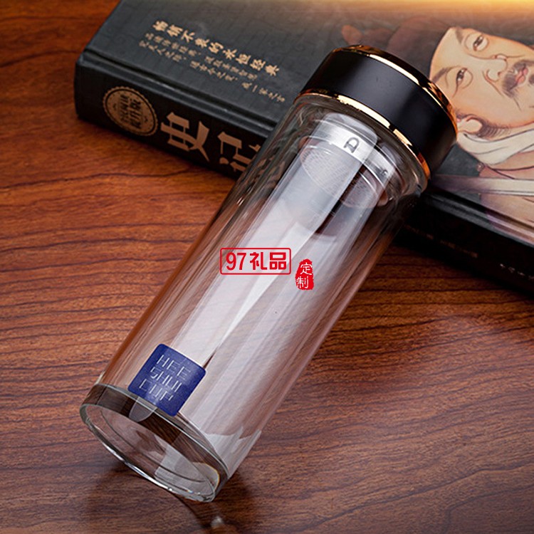玻璃水杯雙層茶杯子定制廣告杯印字LOGO商務(wù)禮品水晶杯