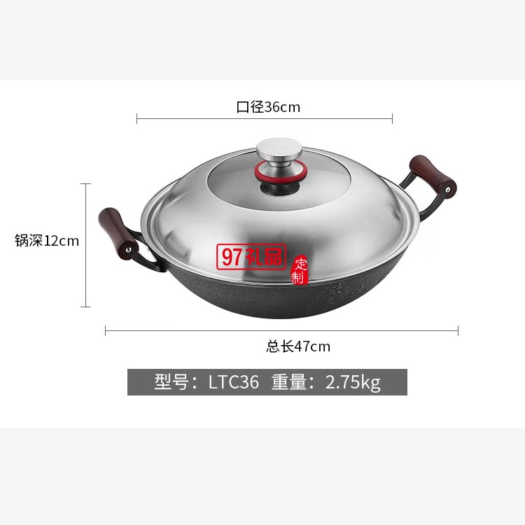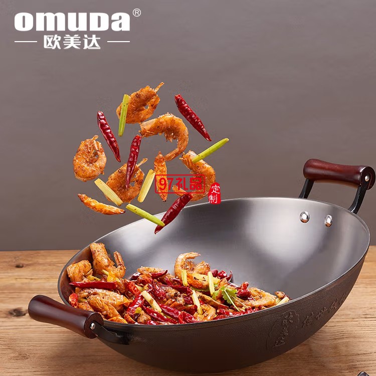 歐美達(dá)鐵鍋老式雙耳不粘炒鍋炒菜鍋 LTC36 36cm定制公司廣告禮品