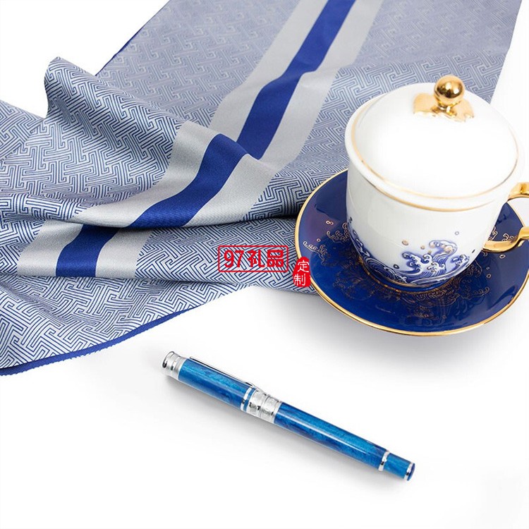 真絲長巾男高檔商務禮盒送禮 杭州絲綢長巾圍巾男瓷器元首筆套裝 君臨 灰