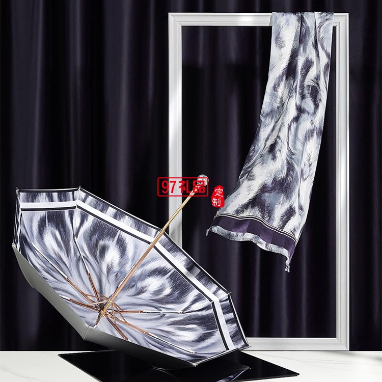 真絲桑蠶絲絲巾女防曬夏季禮盒 杭州絲綢長巾紗巾防曬傘套裝送禮 達(dá)芬奇密