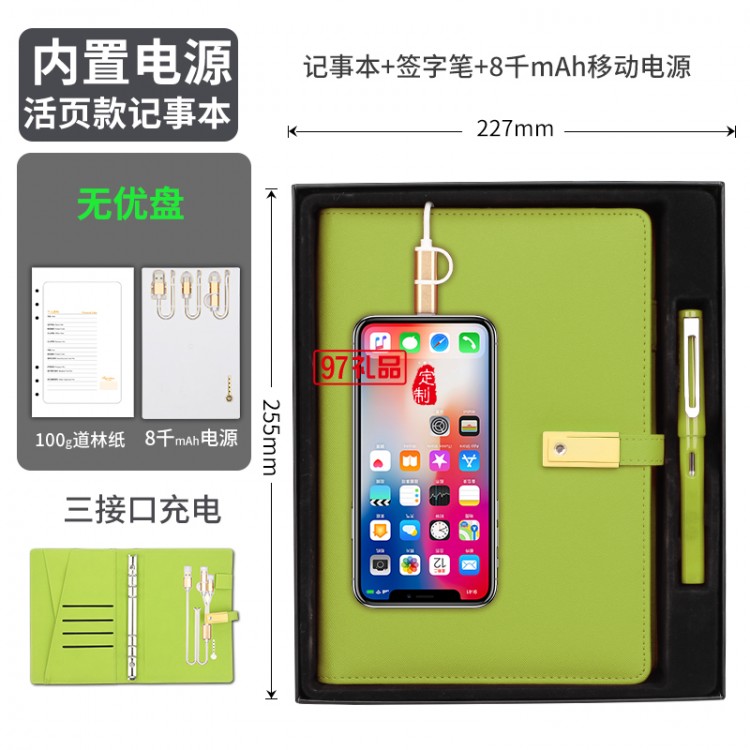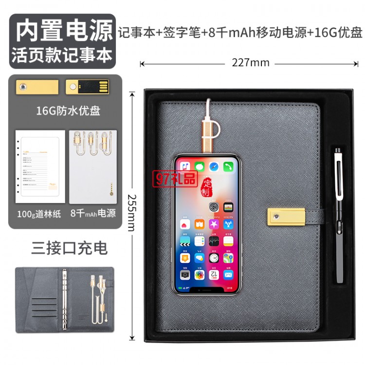 A5多功能電源筆記本+16G U盤+禮盒包裝+簽字筆