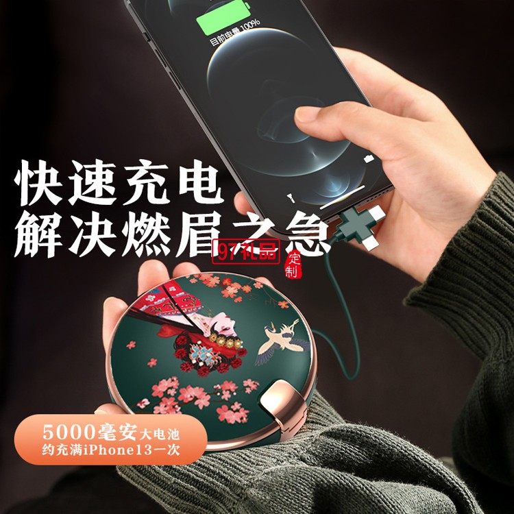 創(chuàng)意自帶線充電寶 便攜通用化妝鏡可暖手5000MAh-10000MAh