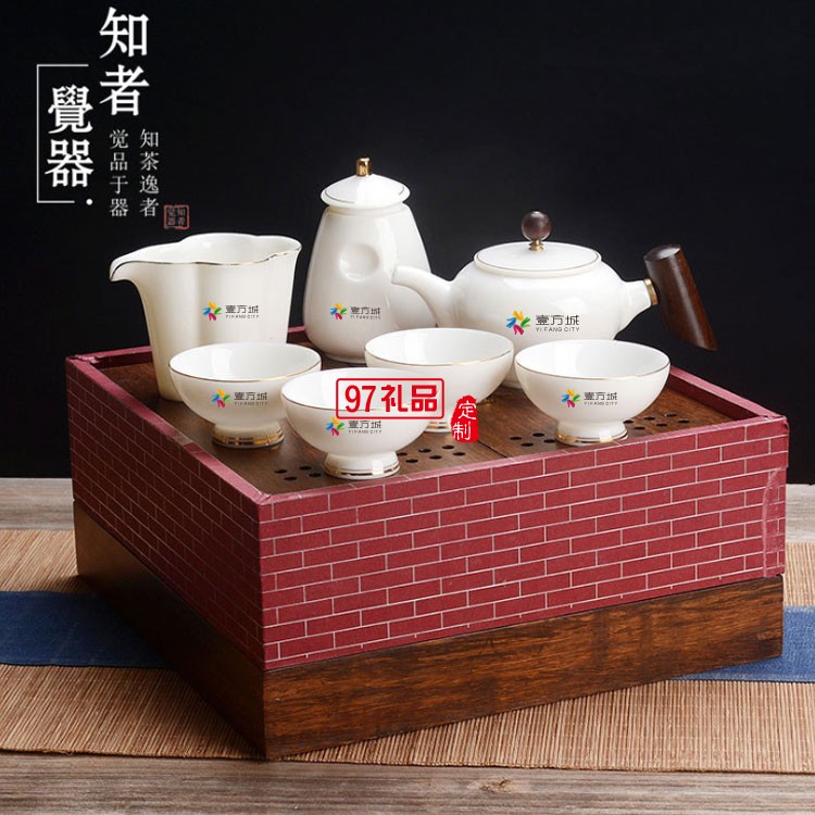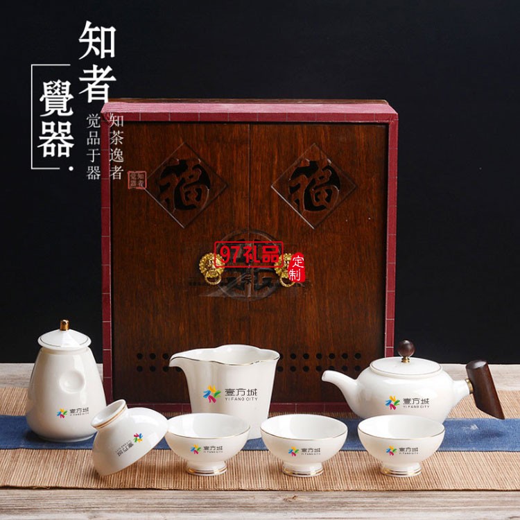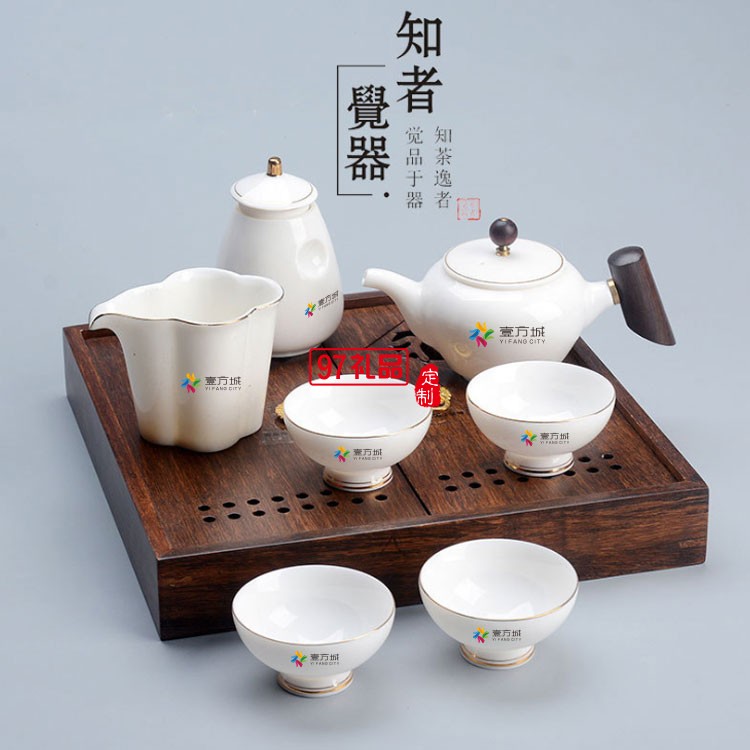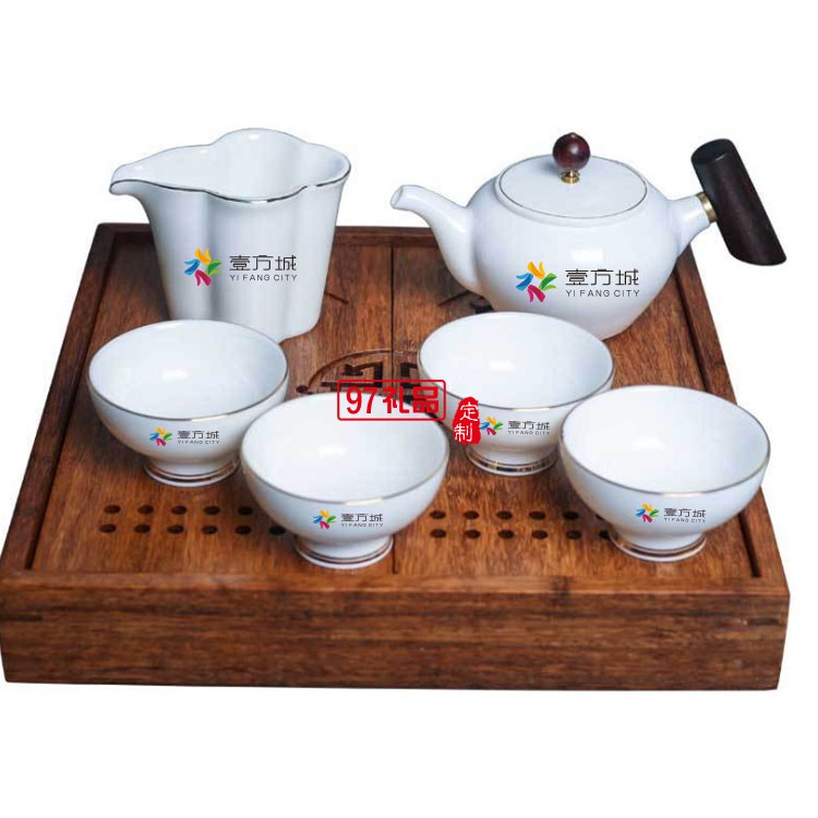 壹方城定制羊脂玉茶具套裝 商務(wù)禮物 可定制logo