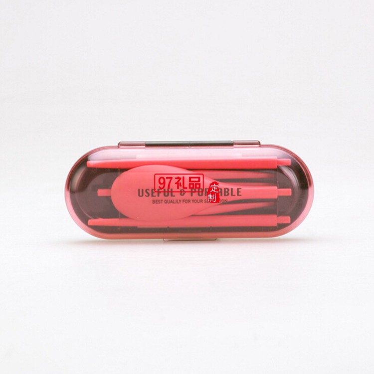 名稱:便攜餐具兩件套 尺寸:4.8*2.8*12CM 材質(zhì):美國食品級(jí)ABS 顏色:粉色、藍(lán)色、綠色、黃色 重量:57g 包裝:環(huán)保開窗牛皮紙盒 小包裝數(shù):兩件套 箱規(guī):58*26.5*43CM