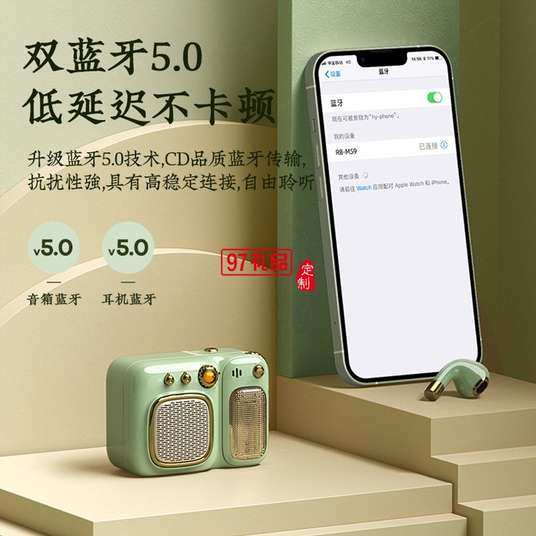 REMAX/睿量 復(fù)古藍(lán)牙音箱5.0帶耳機可充電插卡帶收音機小音響