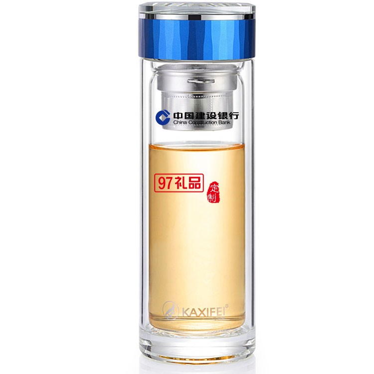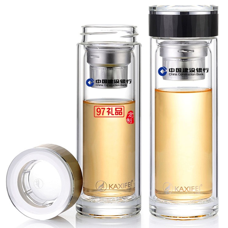 中國(guó)建設(shè)銀行定制雙層玻璃杯隔熱過(guò)濾茶杯高檔商務(wù)水晶杯