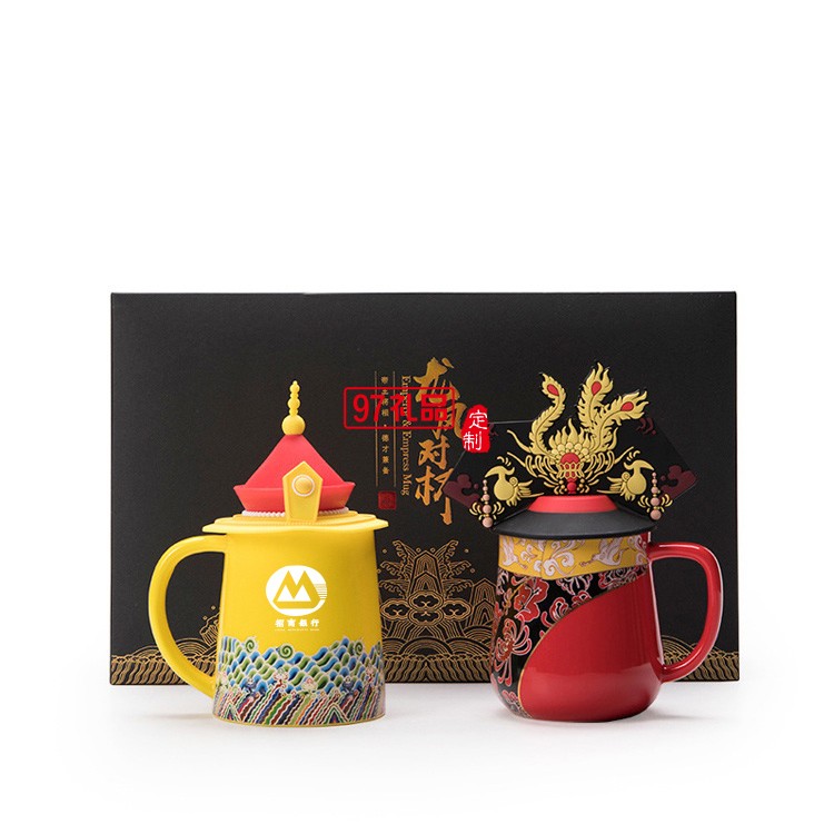 國潮文創(chuàng)陶瓷龍鳳杯套裝純手工杯茶具陶瓷帶蓋泡茶杯送客戶禮品