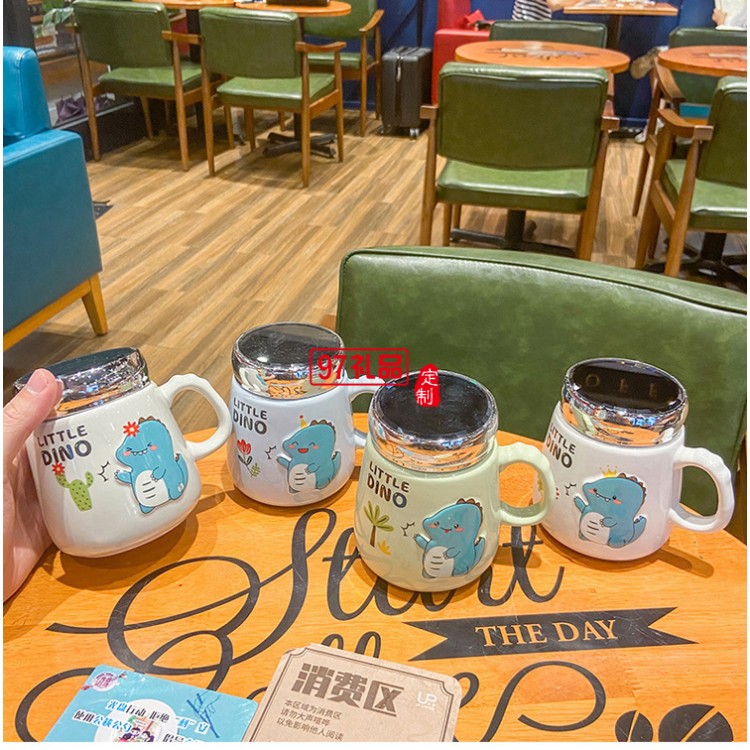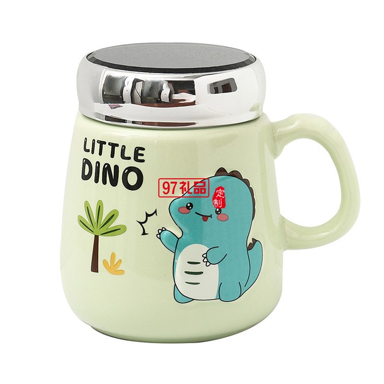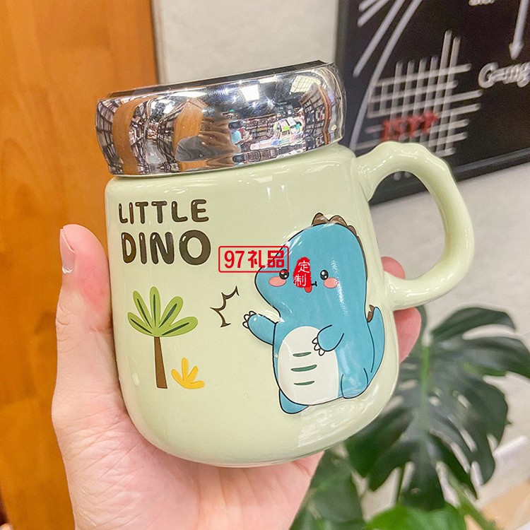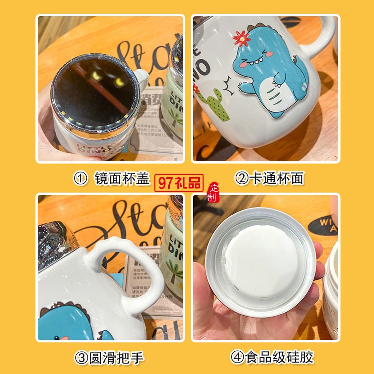可愛卡通恐龍動物陶瓷杯子密封蓋鏡面?zhèn)€性兒童馬克杯