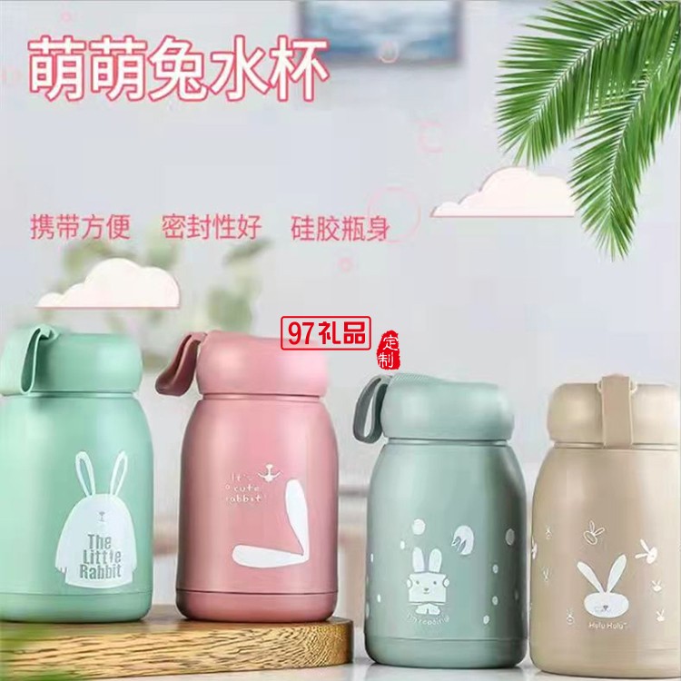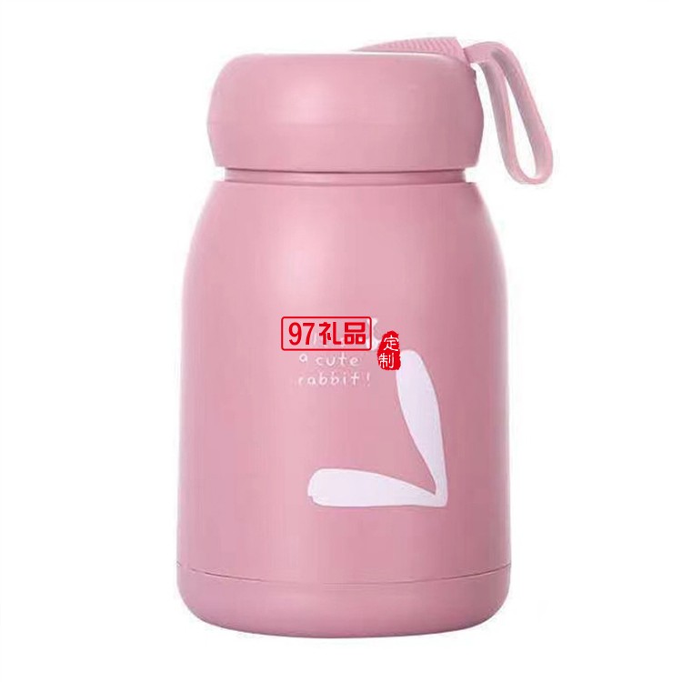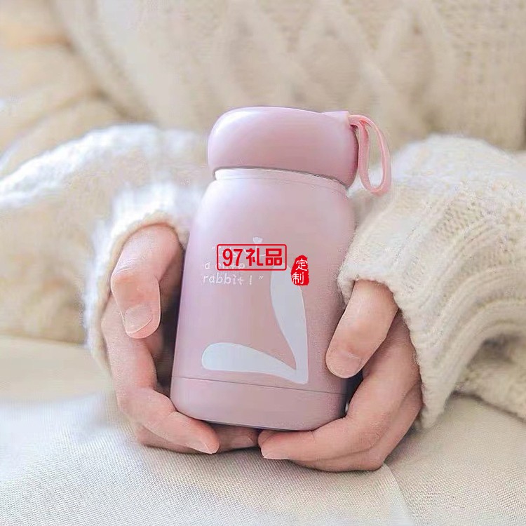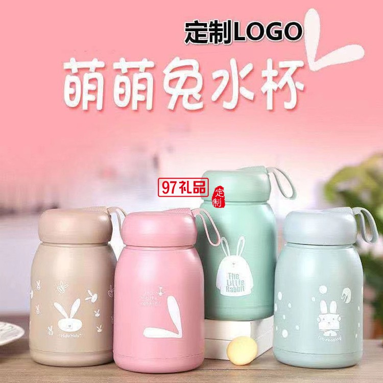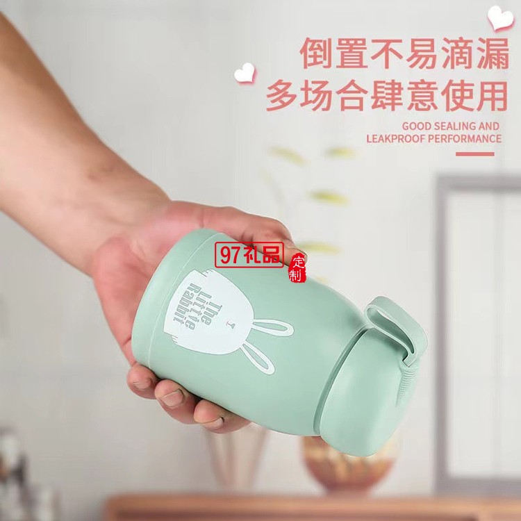 可愛萌萌兔水杯便攜式水杯學(xué)生帶提繩杯子