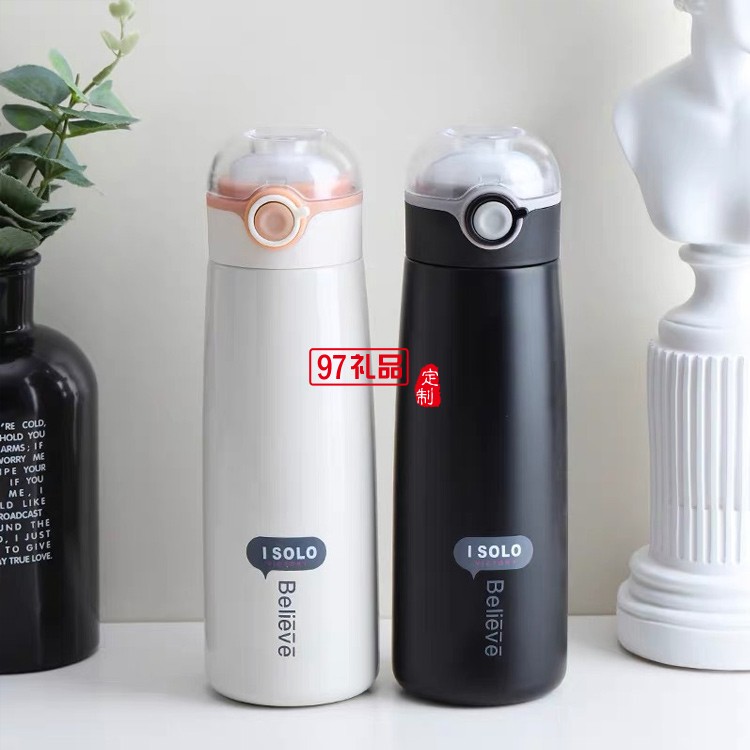 新款304不銹鋼保溫杯女學(xué)生彈跳杯戶外韓版水杯可定制logo